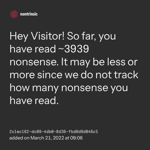 поделитьсяHey Visitor! So far, you have read ~2323 nonsense. It may be less or more since we do not track how many nonsense you have read.
