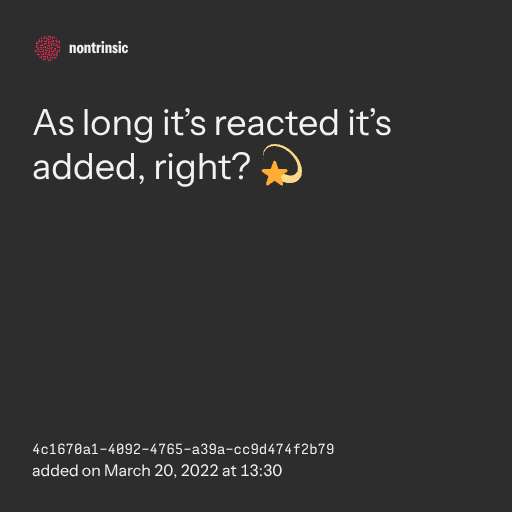 поделитьсяAs long it’s reacted it’s added, right? 💫