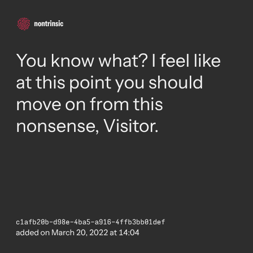 поделитьсяYou know what? I feel like at this point you should move on from this nonsense, Visitor.