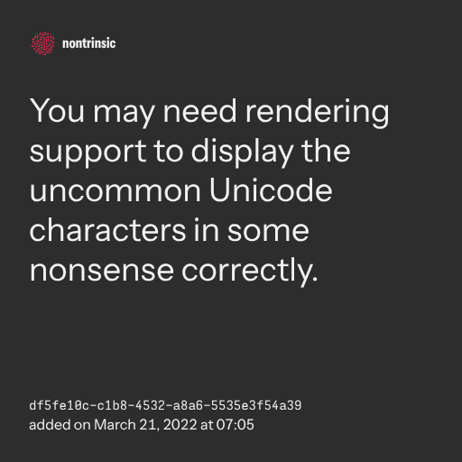 поделитьсяYou may need rendering support to display the uncommon Unicode characters in some nonsense correctly.
