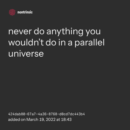 поделитьсяnever do anything you wouldn’t do in a parallel universe
