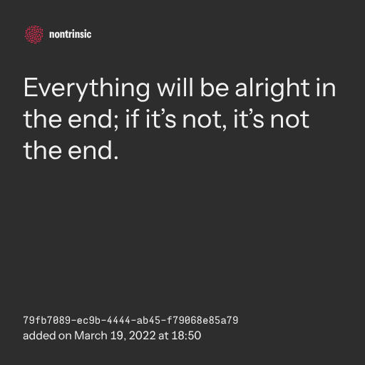 поделитьсяEverything will be alright in the end; if it’s not, it’s not the end.