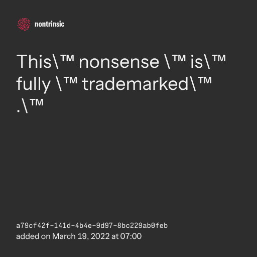 поделитьсяThis\™ nonsense \™ is\™ fully \™ trademarked\™ .\™