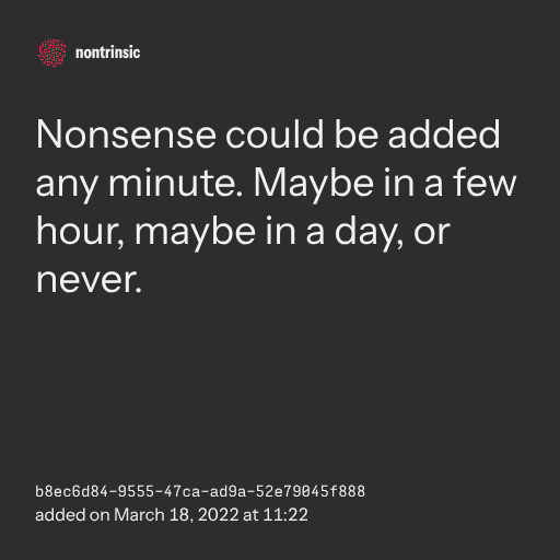 поделитьсяNonsense could be added any minute. Maybe in a few hour, maybe in a day, or never.