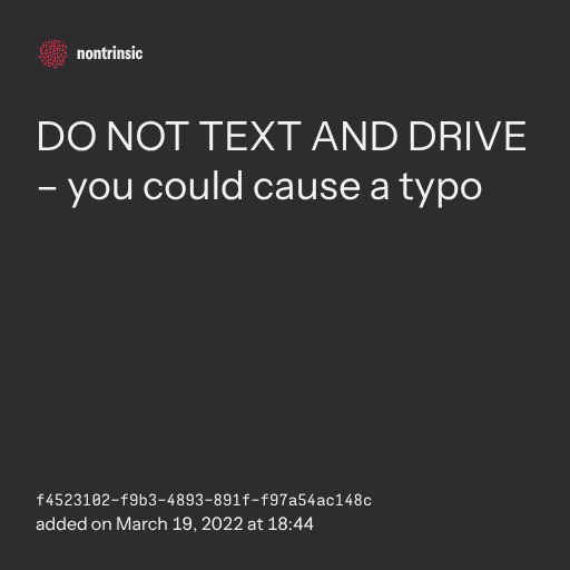 поделитьсяDO NOT TEXT AND DRIVE – you could cause a typo
