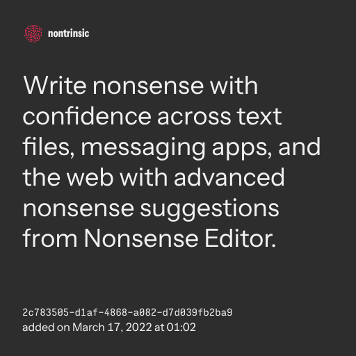 поделитьсяWrite nonsense with confidence across text files, messaging apps, and the web with advanced nonsense suggestions from Nonsense Editor.