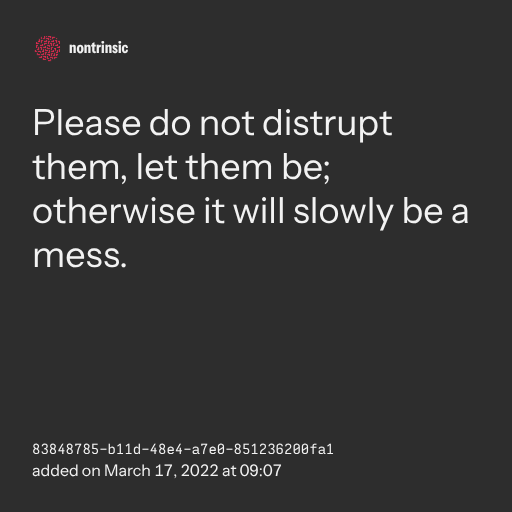 поделитьсяPlease do not distrupt them, let them be; otherwise it will slowly be a mess.