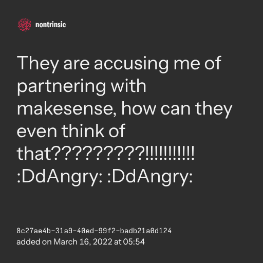 поделитьсяThey are accusing me of partnering with makesense, how can they even think of that?????????!!!!!!!!!!! :DdAngry: :DdAngry: