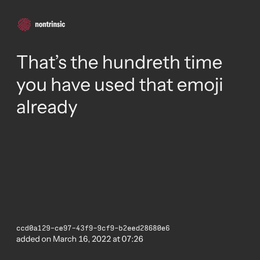 поделитьсяThat’s the hundreth time you have used that emoji already