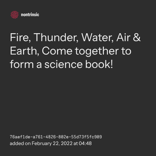поделитьсяFire, Thunder, Water, Air & Earth, Come together to form a science book!