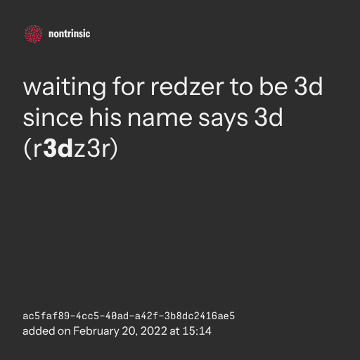 поделитьсяwaiting for redzer to be 3d since his name says 3d (r3dz3r)