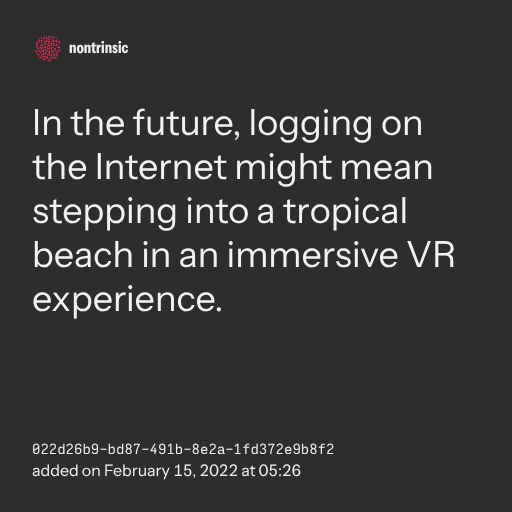 поделитьсяIn the future, logging on the Internet might mean stepping into a tropical beach in an immersive VR experience.