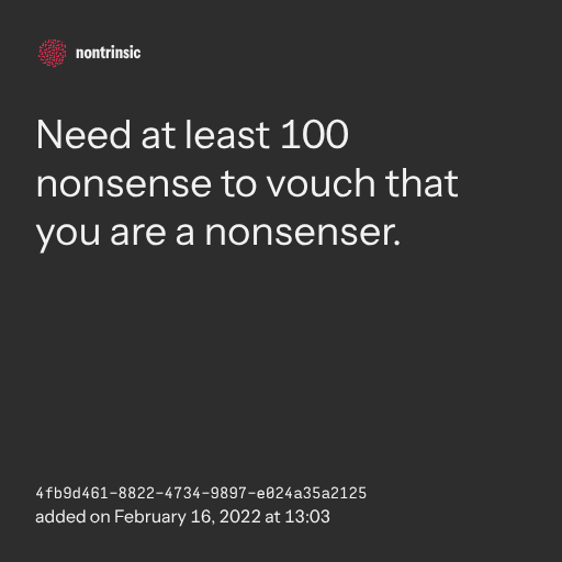поделитьсяNeed at least 100 nonsense to vouch that you are a nonsenser.