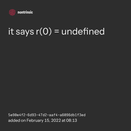 поделитьсяit says r(0) = undefined