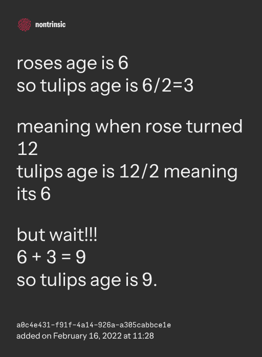 so tulips age is 6/2=3