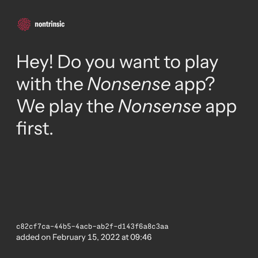 поделитьсяHey! Do you want to play with the Nonsense app? We play the Nonsense app first.