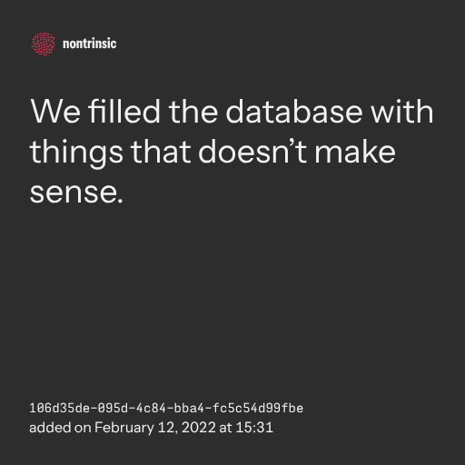 поделитьсяWe filled the database with things that doesn’t make sense.