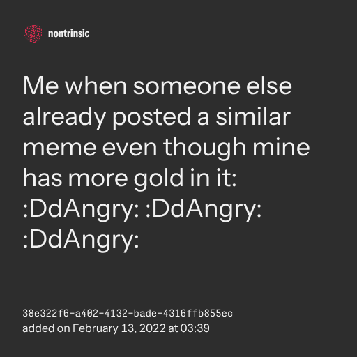 поделитьсяMe when someone else already posted a similar meme even though mine has more gold in it: :DdAngry: :DdAngry: :DdAngry: