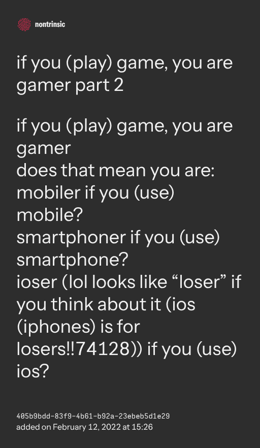 ioser (lol looks like “loser” if you think about it (ios (iphones) is for losers!!74128)) if you (use) ios?