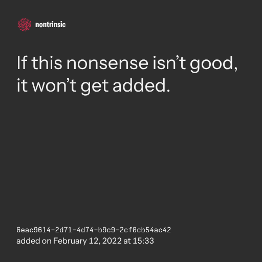 поделитьсяIf this nonsense isn’t good, it won’t get added.