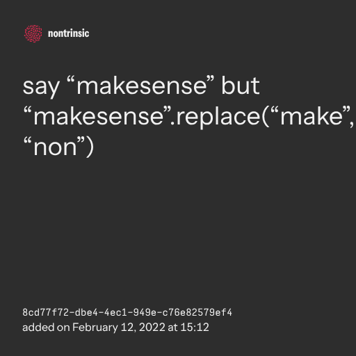 поделитьсяsay “makesense” but “makesense”.replace(“make”, “non”)