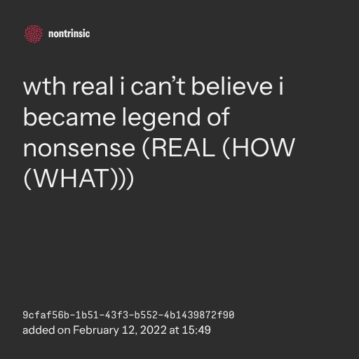 поделитьсяwth real i can’t believe i became legend of nonsense (REAL (HOW (WHAT)))