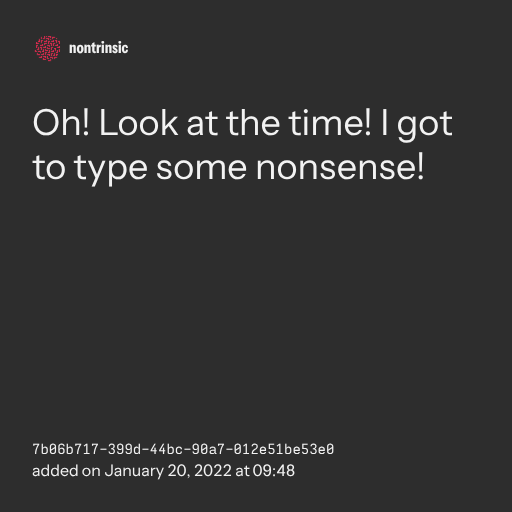 поделитьсяOh! Look at the time! I got to type some nonsense!