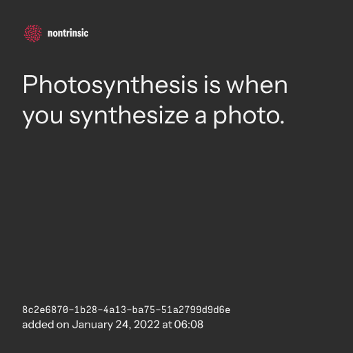 поделитьсяPhotosynthesis is when you synthesize a photo.