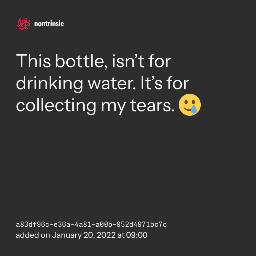 поделитьсяThis bottle, isn’t for drinking water. It’s for collecting my tears. 🥲