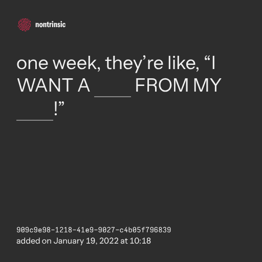 поделитьсяone week, they’re like, “I WANT A