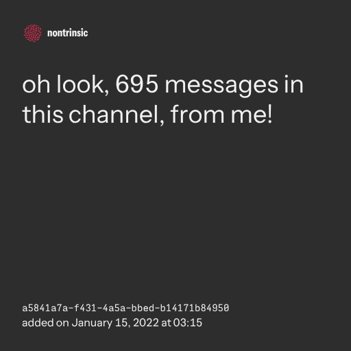 поделитьсяoh look, 695 messages in this channel, from me!