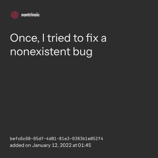 поделитьсяOnce, I tried to fix a nonexistent bug