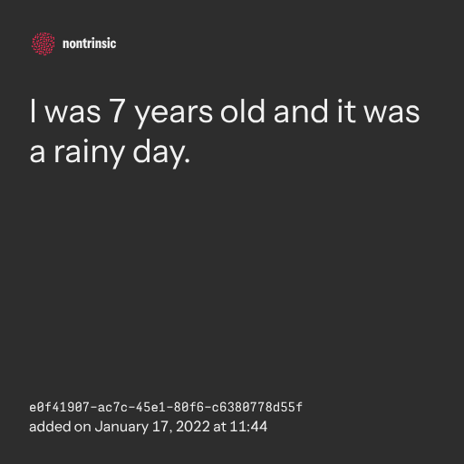 поделитьсяI was 7 years old and it was a rainy day.