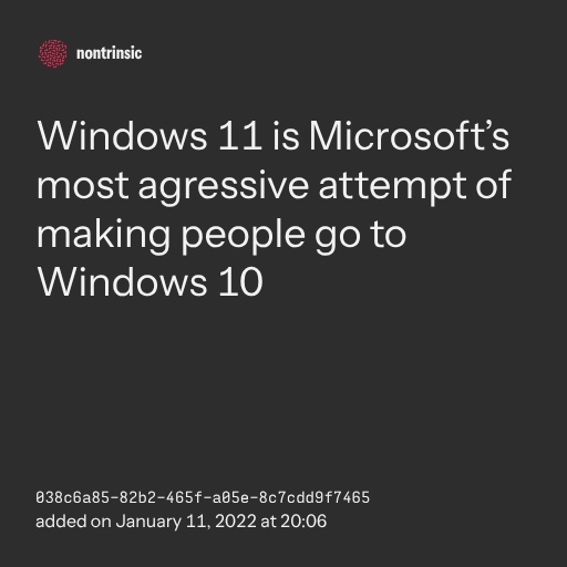 Windows 11 is Microsoft’s most agressive attempt of making people go to Windows 10