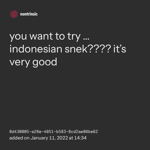 поделитьсяyou want to try … indonesian snek???? it’s very good