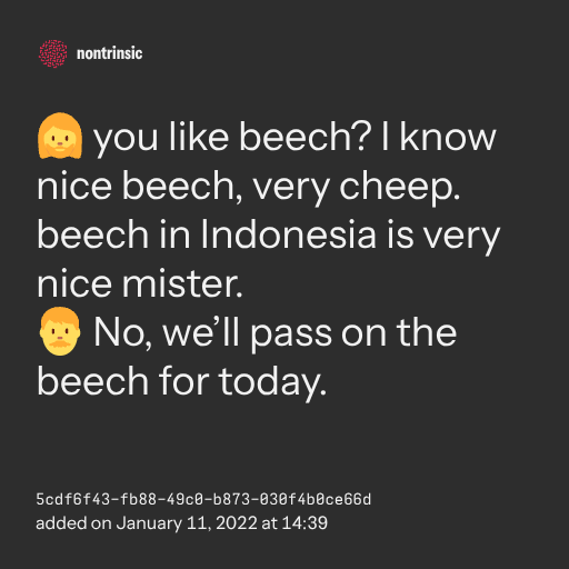 поделиться🧔♀️ you like beech? I know nice beech, very cheep. beech in Indonesia is very nice mister.