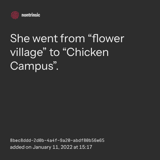 поделитьсяShe went from “flower village” to “Chicken Campus”.