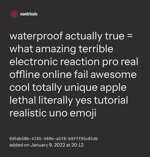 поделитьсяwaterproof actually true = what amazing terrible electronic reaction pro real offline online fail awesome cool totally unique apple lethal literally yes tutorial realistic uno emoji