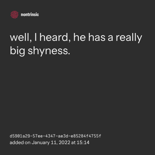 поделитьсяwell, I heard, he has a really big shyness.
