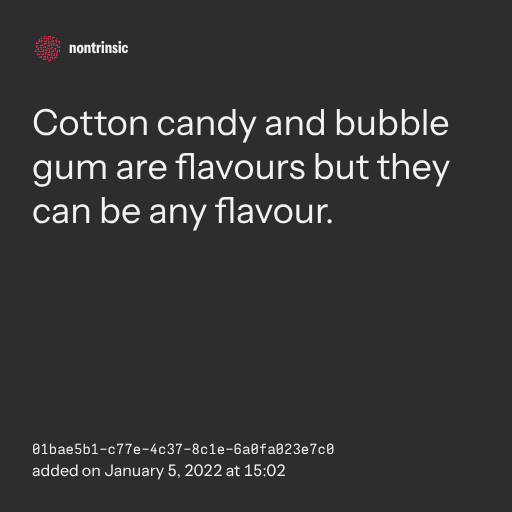 поделитьсяCotton candy and bubble gum are flavours but they can be any flavour.