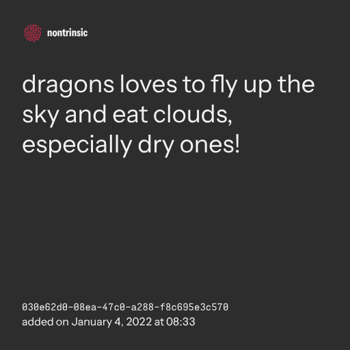 поделитьсяdragons loves to fly up the sky and eat clouds, especially dry ones!