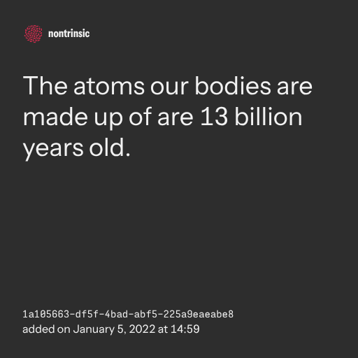поделитьсяThe atoms our bodies are made up of are 13 billion years old.