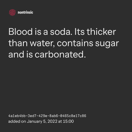 поделитьсяBlood is a soda. Its thicker than water, contains sugar and is carbonated.