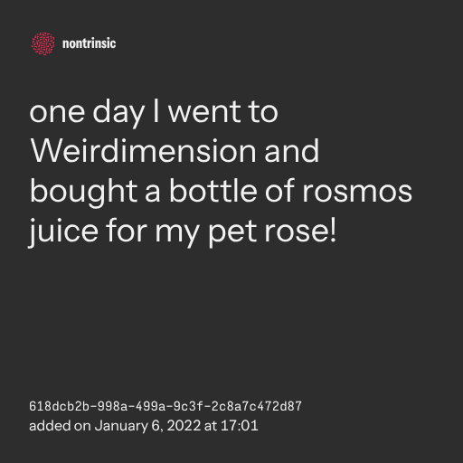 поделитьсяone day I went to Weirdimension and bought a bottle of rosmos juice for my pet rose!