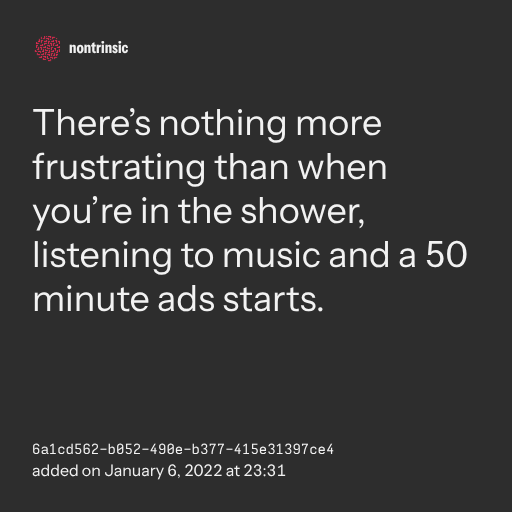 поделитьсяThere’s nothing more frustrating than when you’re in the shower, listening to music and a 50 minute ads starts.