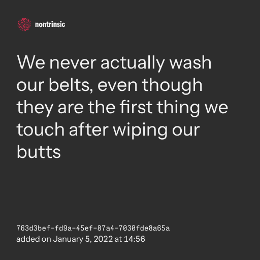 поделитьсяWe never actually wash our belts, even though they are the first thing we touch after wiping our butts