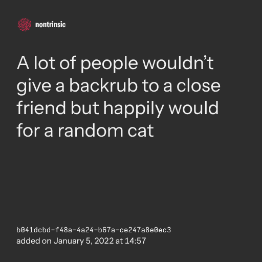 поделитьсяA lot of people wouldn’t give a backrub to a close friend but happily would for a random cat