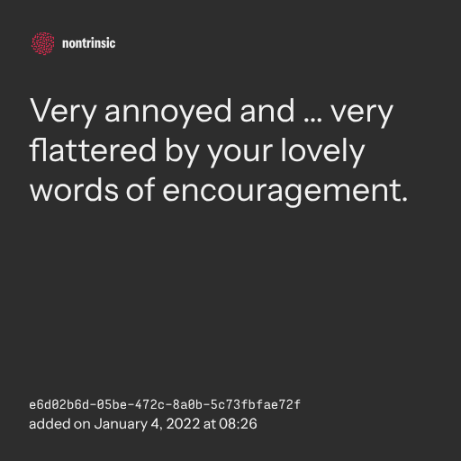 поделитьсяVery annoyed and … very flattered by your lovely words of encouragement.
