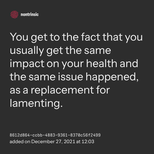 поделитьсяYou get to the fact that you usually get the same impact on your health and the same issue happened, as a replacement for lamenting.