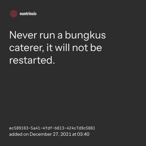 поделитьсяNever run a bungkus caterer, it will not be restarted.